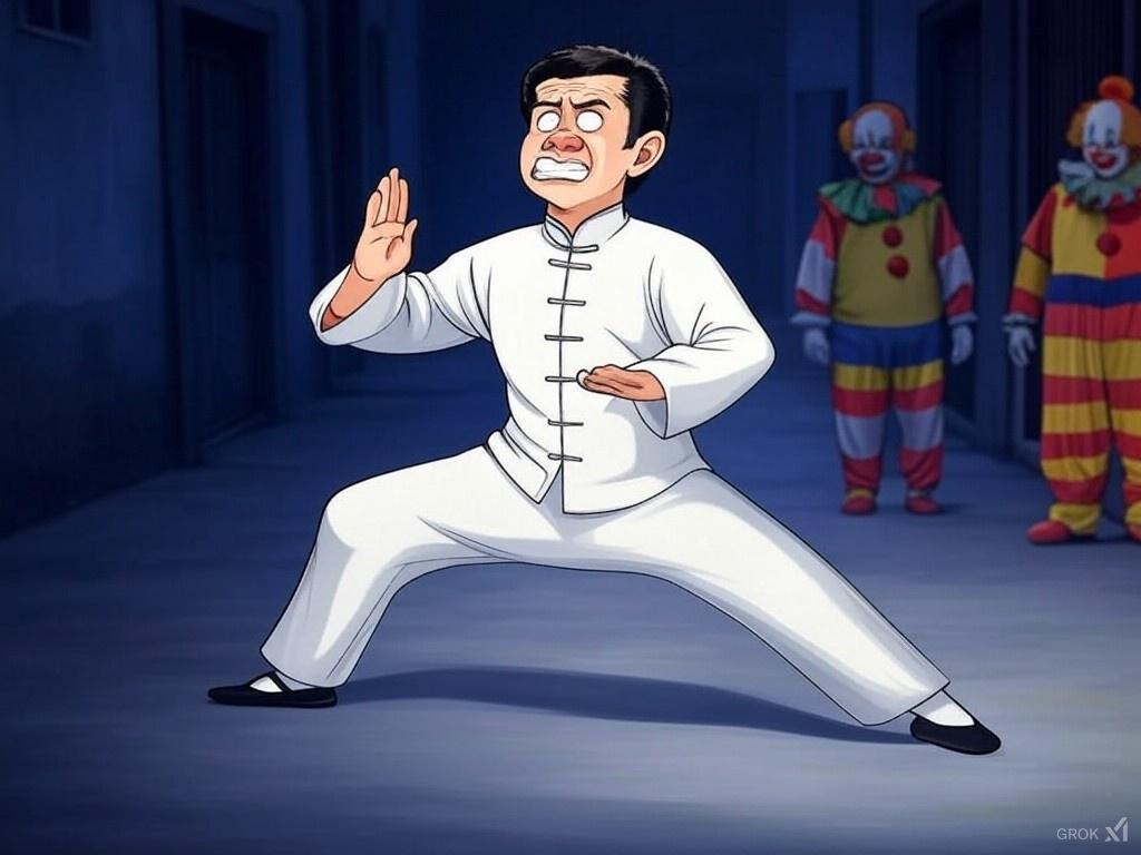 Tai Chi, with its soft, slow, flowing, gentle movements, is perhaps the least masculine-looking martial art you could imagine, yet here is “Master Lee” strolling around a TV studio with his top off showing off his impressively-muscled abs, which he says he got from tai chi.