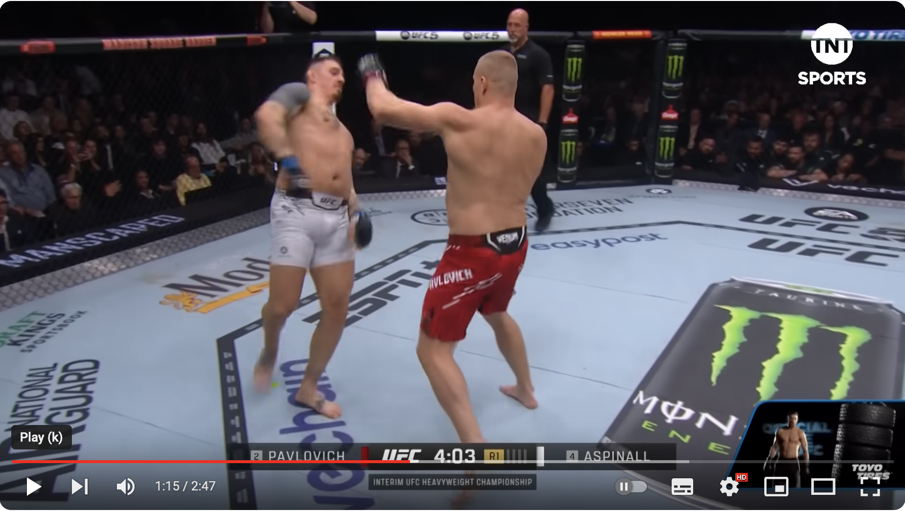I left the reader with a question at the end… I asked them to take a look at another fight on the same UFC 295 card where British heavyweight Tom Aspinall took the interim heavyweight belt by defeating Sergei Pavlovich. The question was what animal style could we say that Tom Aspinall was a good example of. Take a look at the fight before reading further if, you haven’t already.