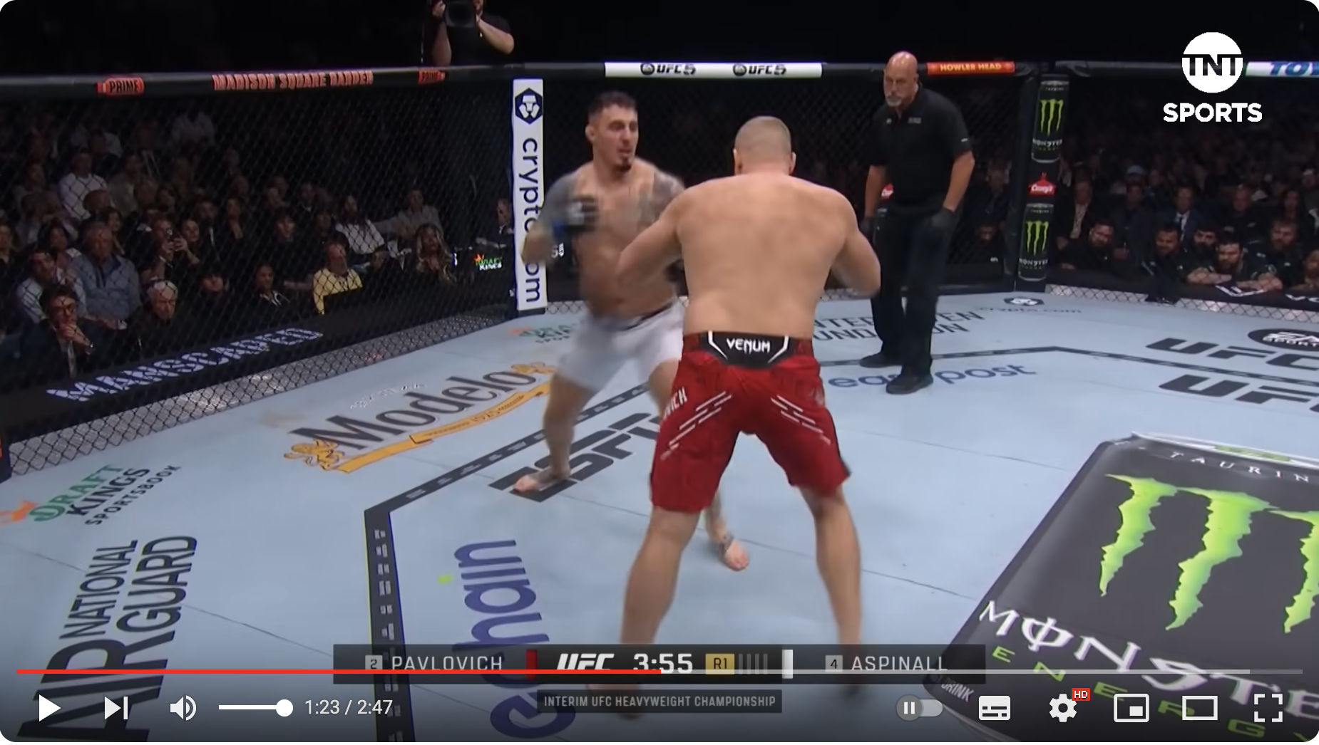But let’s get back to UFC 295. In contrast his opponent, Alex Pereira is famous for his minimal movement and crushing low calf kicks. There’s a great clip of him playing about with UFC commentator Daniel Cormier taking his low kick: